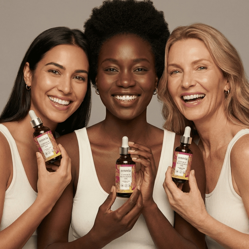 Renovia's Cyperus Rotundus formula isn't another internet fad—it's backed by real clinical research on hair growth inhibition. The same botanical Egyptian women trusted for centuries, now refined with modern extraction methods that healthcare professionals actually stand behind.
